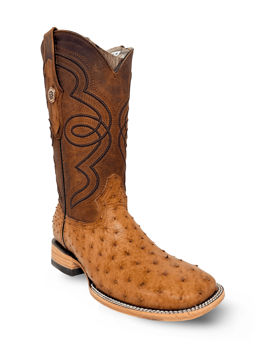 🇺🇸 Western boots crafted from genuine ostrich leather in a warm brandy tone, highlighting natural quill texture and delivering a refined western style.