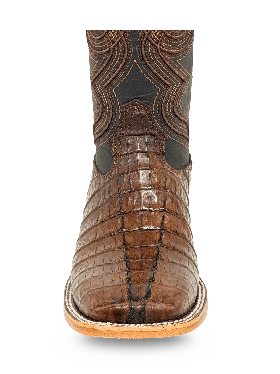 🇲🇽 Botas vaqueras elaboradas con piel genuina de cola de cocodrilo en color café, que resalta la textura natural de la escama y ofrece una presencia fuerte y elegante.